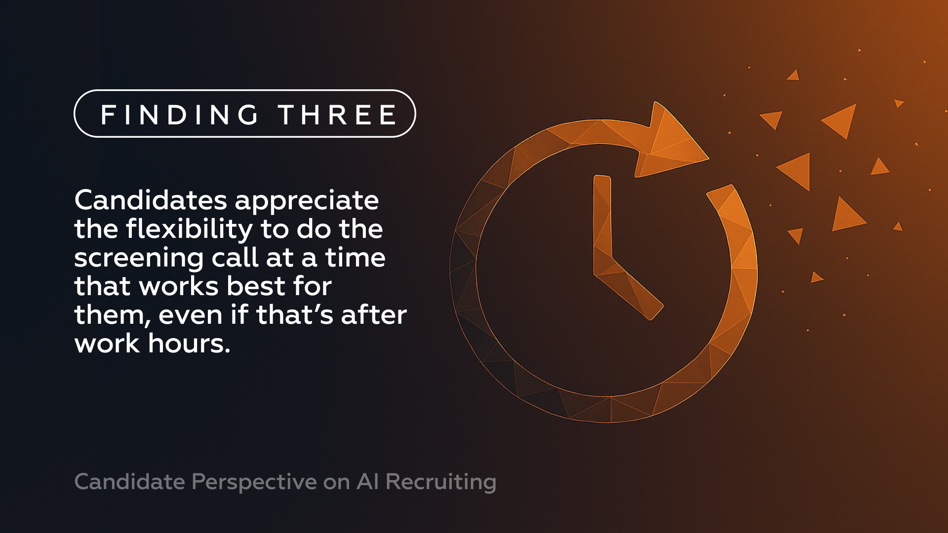Yes—candidates see flexibility as a sign of respect and understanding. Every candidate in our research emphasized the value of completing screening on their own schedule. One said: "It's very important for people who can't interview during the day to have that option to conduct the AI screening call at night." For hourly workers, shift workers, and students, rigid 9-5 scheduling excludes qualified candidates. AI screening enables 24/7 availability without adding recruiter hours.